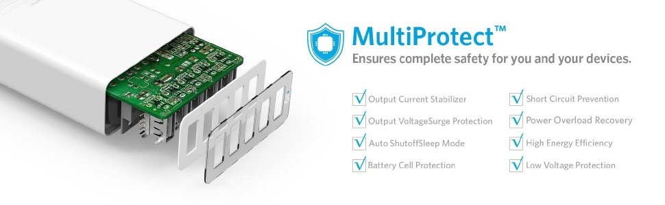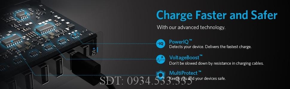 Không phải tất cả các đầu sạc đều được tạo ra giống nhau. Các cổng sạc tiêu chuẩn chỉ sạc được Android HOẶC iOS với tốc độ tối đa. Nhưng với công nghệ PowerIQ™, mỗi đầu sạc sẽ tự động nhận biết thiết bị và điều chỉnh tốc độ sạc cho tối ưu.