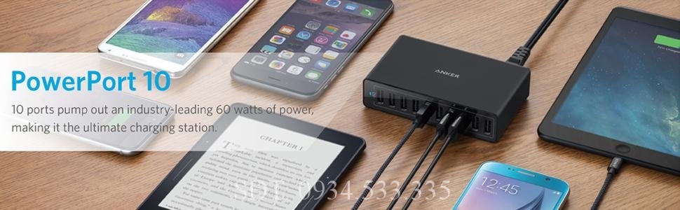 Hãy vĩnh biệt việc sử dụng nhiều cục sạc, đầu sạc. Xin chào cục sạc " tất cả trong 1". Với công suất 60W / 10 đầu sạc, bạn có thể sạc đủ các loại thiết bị từ điện thoại, máy tính bảng. Thậm chí là sạc 5 máy tính bảng cùng lúc !!!!!