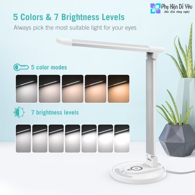 ✔️ Đèn bàn LED tích hợp sạc không dây Qi tiện lợi