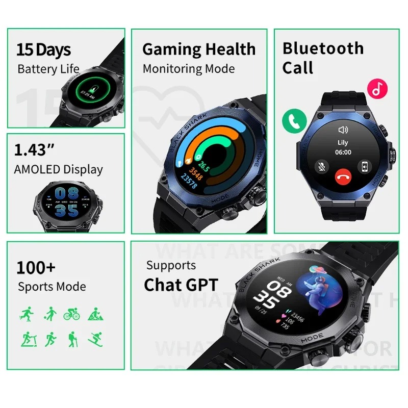 Một điểm nổi bật mà Black Shark S1 Pro mang lại chính là tích hợp trí tuệ nhân tạo ChatGPT, cho phép người dùng đặt câu hỏi, tra cứu thông tin, học tập hoặc làm việc mọi lúc mọi nơi. Với đồng hồ thông minh Xiaomi Black Shark S1 Pro, bạn luôn có một người đồng hành thông minh hỗ trợ bạn 24/7.