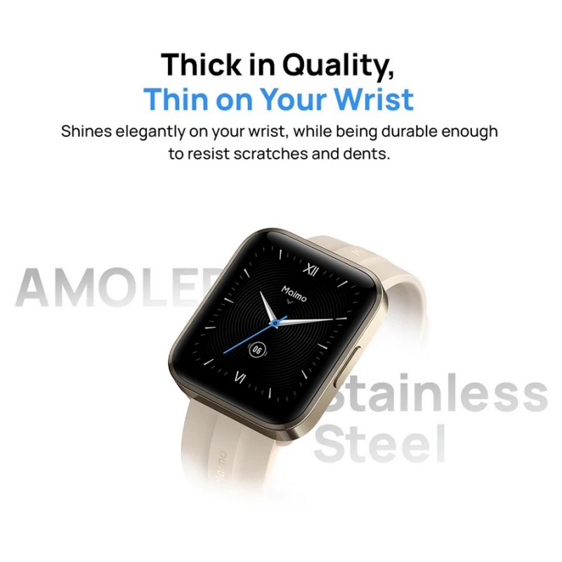 Maimo Watch Flow sở hữu thiết kế màn hình cong tràn viền 1.57 inch, hiển thị rõ ràng và sắc nét ngay cả dưới ánh nắng. Dây đeo silicone mềm mại, ôm tay thoải mái, phù hợp với nhiều phong cách từ thể thao đến thời trang. Nhiều tùy chọn mặt đồng hồ cho phép bạn dễ dàng tùy biến để thể hiện cá tính.