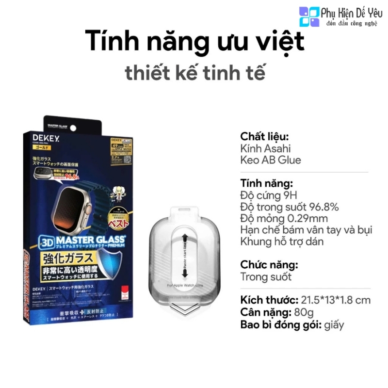 Trong thế giới phụ kiện Apple Watch Ultra, không phải miếng dán nào cũng đáp ứng được tiêu chí đẹp – bền – mỏng – chuẩn zin. Nhưng Kính Cường Lực DEKEY 3D Master Glass Premium cho Apple Watch Ultra 1/2/3 thì làm được — thậm chí vượt xa kỳ vọng.