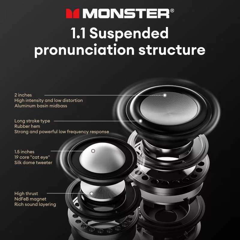 Nhờ cấu trúc phát âm treo với loa trầm 2 inch và loa tweeter 1.5 inch, Monster Airmars G06 tái hiện âm thanh cân bằng ba dải tần – mang đến trải nghiệm nghe nhạc sống động, chi tiết đến từng giai điệu.