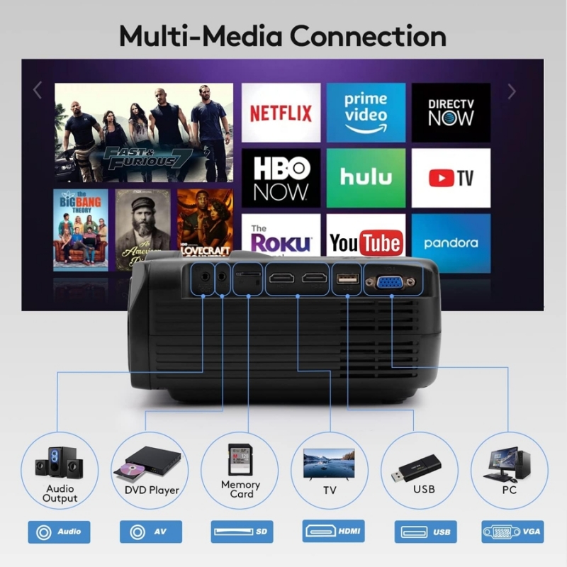 Bạn có thể kết nối: laptop, TV Box, điện thoại, máy chơi game, Apple TV, Chromecast… biến bất kỳ không gian nào thành rạp phim mini.
