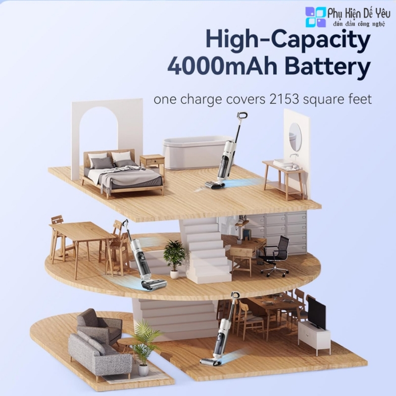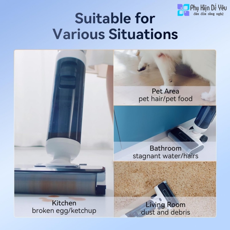 Ba chức năng trong một: hút bụi, hút ướt và lau sàn, xử lý nhanh cả bụi khô, vết bẩn ướt và lông thú cưng.