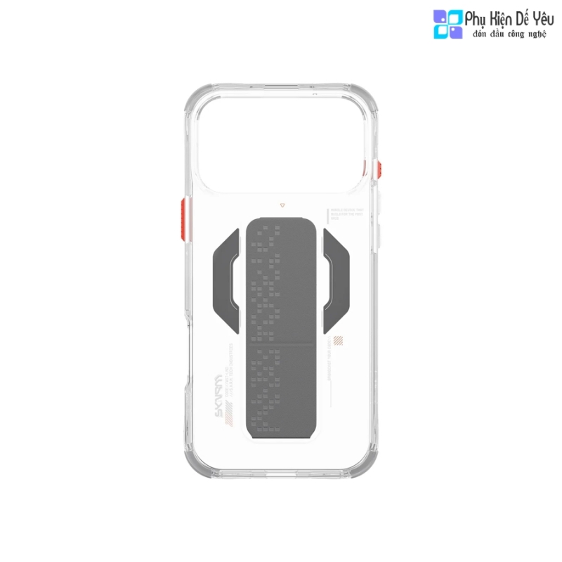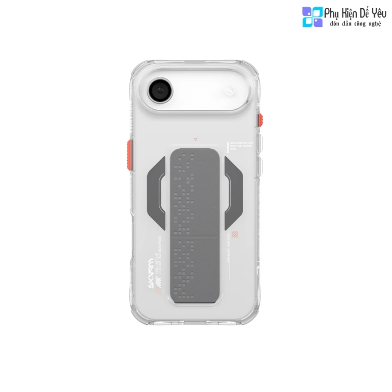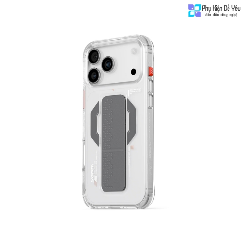 Lấy cảm hứng từ lưới tín hiệu phân mảnh, Ốp SKINARMA HAXA cho iPhone 17 Pro Max, Ốp SKINARMA HAXA cho iPhone 17 Pro và Ốp SKINARMA HAXA cho iPhone 17 Air sở hữu ngoại hình trong suốt tinh tế, điểm xuyết bằng các chi tiết góc cạnh mạnh mẽ. Chân đế gập được tích hợp khéo léo, giúp bạn biến chiếc iPhone thành màn hình mini để học online, xem phim hay gọi FaceTime mọi lúc, mọi nơi.