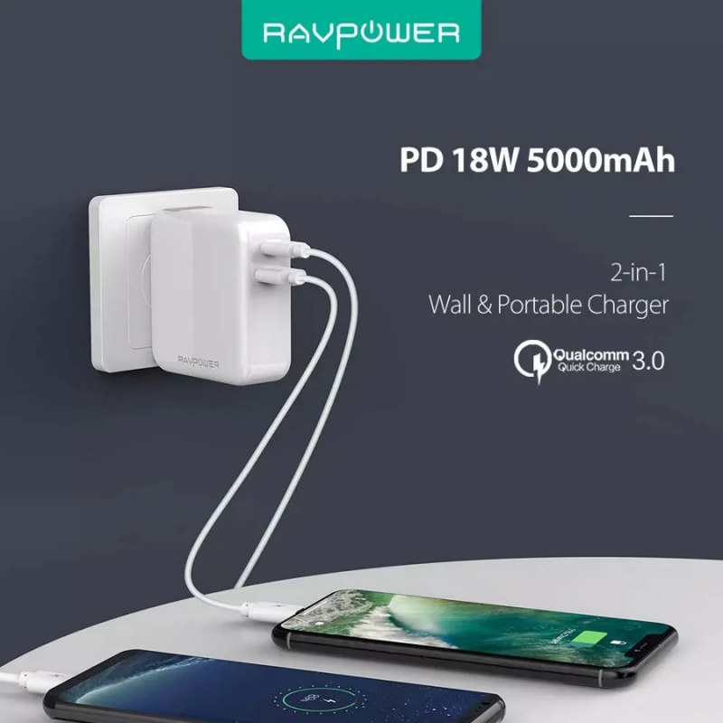 Pin dự phòng tích hợp sạc tường 2 trong 1 RAVPOWER RP-PB101 (5000mAh)