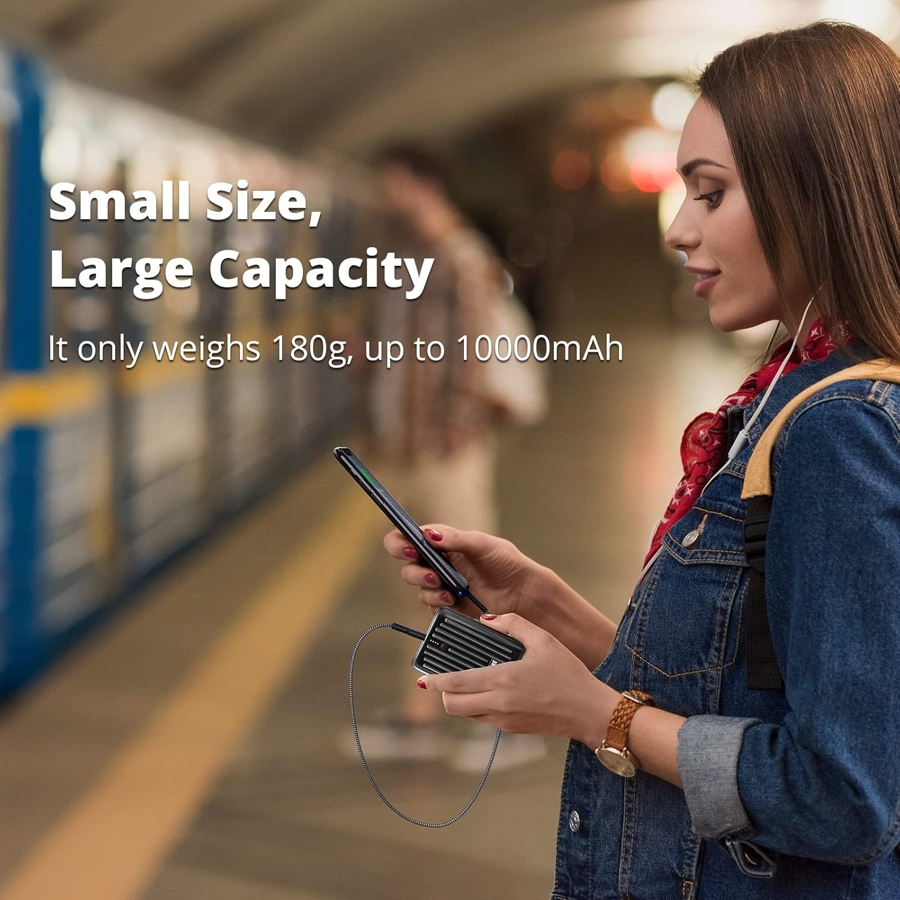 Dung lượng 10.000mAh giúp bạn thoải mái sạc 2–3 lần cho smartphone, đảm bảo năng lượng cho cả ngày dài mà không cần lo hết pin.