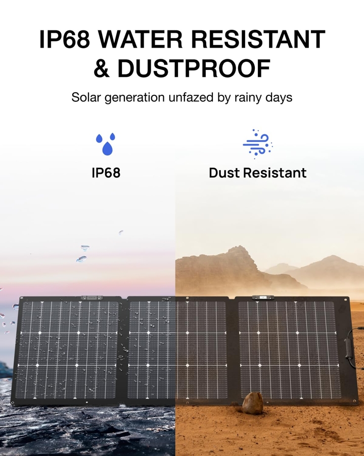 Chuẩn IP68 giúp tấm pin chống nước – chống bụi hiệu quả, hoạt động ổn định ngay cả khi thời tiết thay đổi.