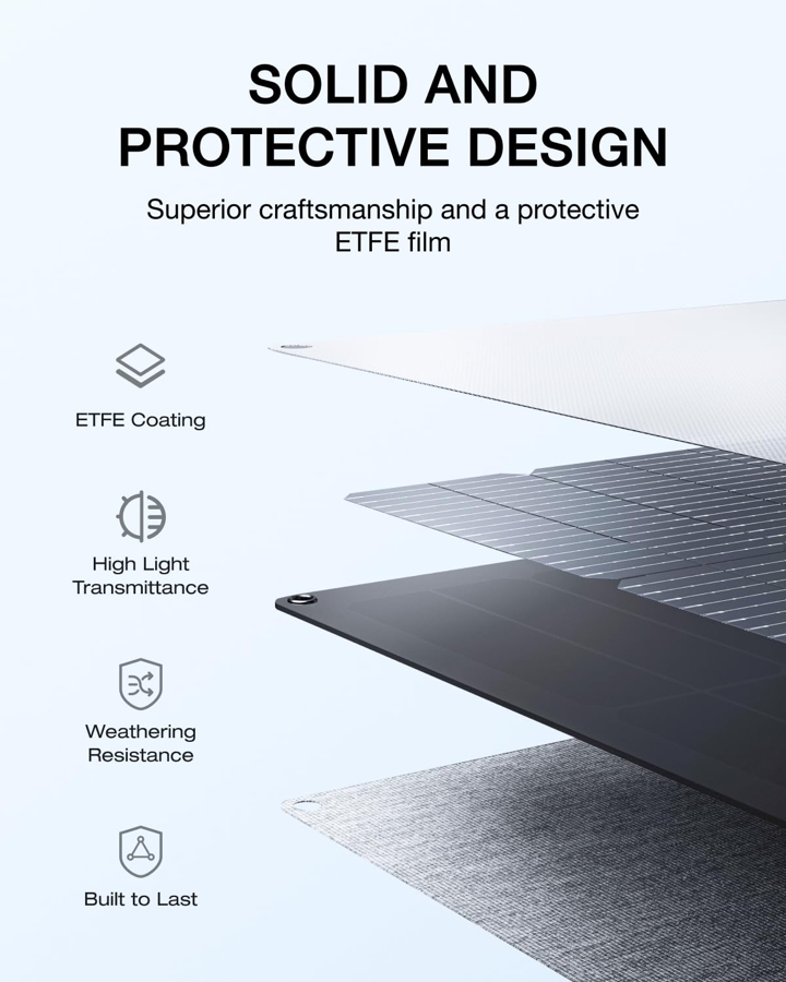 Lớp phủ ETFE cao cấp tăng độ bền, chống tia UV và đảm bảo hiệu suất thu năng lượng lâu dài.