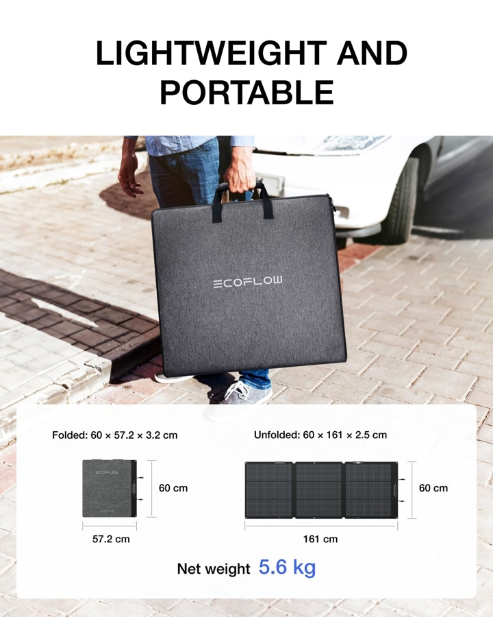 Với trọng lượng chỉ 5,53 kg, tấm pin có thể gập lại nhanh gọn trong vài giây.