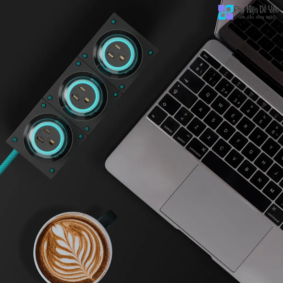 Ổ cắm AC được thiết kế rộng rãi, không lo vướng khi dùng adapter lớn. Hệ thống đèn LED tùy chỉnh mang lại cảm giác hiện đại và có thể tắt hẳn khi cần.
