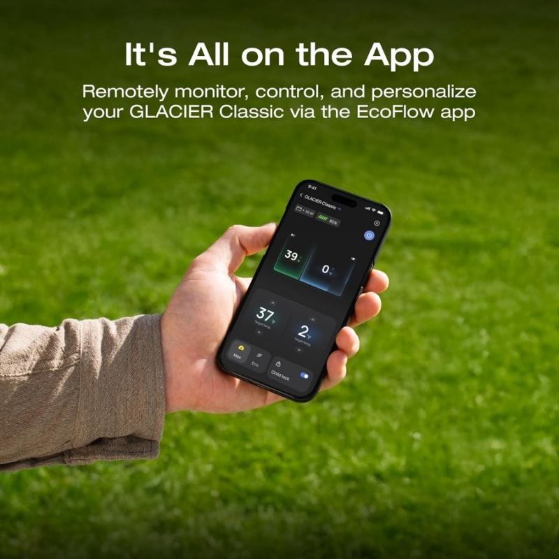 Với ứng dụng EcoFlow, người dùng có thể dễ dàng điều chỉnh nhiệt độ, theo dõi pin và bật/tắt thiết bị từ xa. Tủ lạnh ECOFLOW GLACIER Classic 35L mang đến trải nghiệm quản lý tiện lợi, giúp bạn kiểm soát nhu cầu làm mát mọi lúc, mọi nơi.